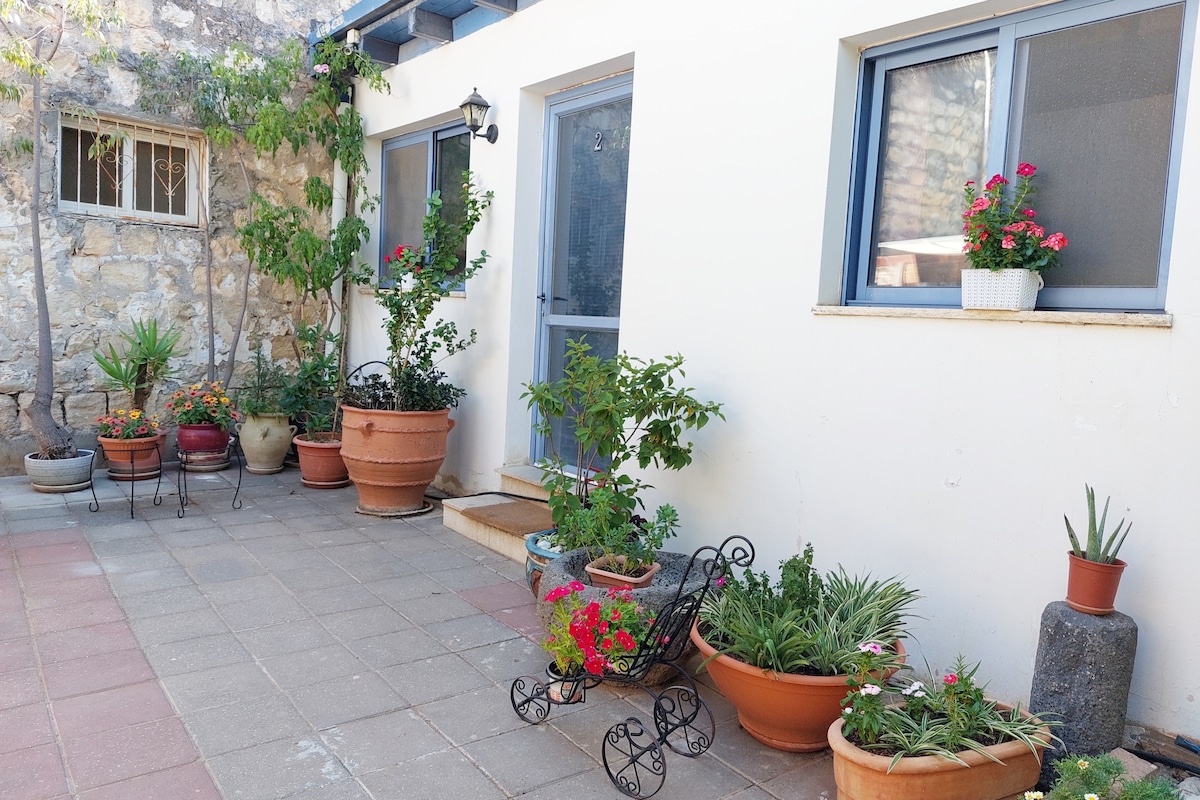 Et rummeligt gæsteværelse med et fuldt udstyret køkken til let madlavning i et kaffehjørne, en lille krydderihave og bryggeplanter til frisk te fra haven, et brusebad med en gammel stenmur, rummet er udstyret med en stor seng og mulighed for at tilføje en madras til et barn og en spiseplads i massivt træ inde i rummet og i haven et behageligt opholdsområde inde i en smuk have i hjertet af Old Roshpina en kort gåtur fra nabolagets supermarked Sinimateck og det kulturelle centrum og gratis parkeringsrestauranter i området Udenfor rummet er der en privat uanstændig brug af gæsterne der er et privat pengeskab uden for døren