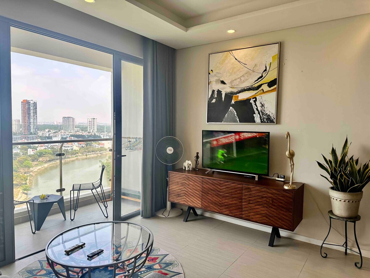 Moderne luksuslejlighed, fuldt udstyret møbler af høj kvalitet, der ligger på Masteri Block 2 Building's 15. etage - et velkendt førsteklasses lokalsamfund for udlændinge i Ho Chi Minh City. Kun få minutter væk fra indkøbscentre, barer, caféer og restauranter i Thao Dien. Har 2 soveværelser, 2 toiletter, der passer til en hel familie, vennegruppe. Gæsterne kan nyde gratis højhastigheds-wi-fi, Netflix, swimmingpool og fitnesscenter. Langtidsleje og biludlejning til rådighed. Sikkerhedspersonale 24/24. Kontakt os for yderligere oplysninger.