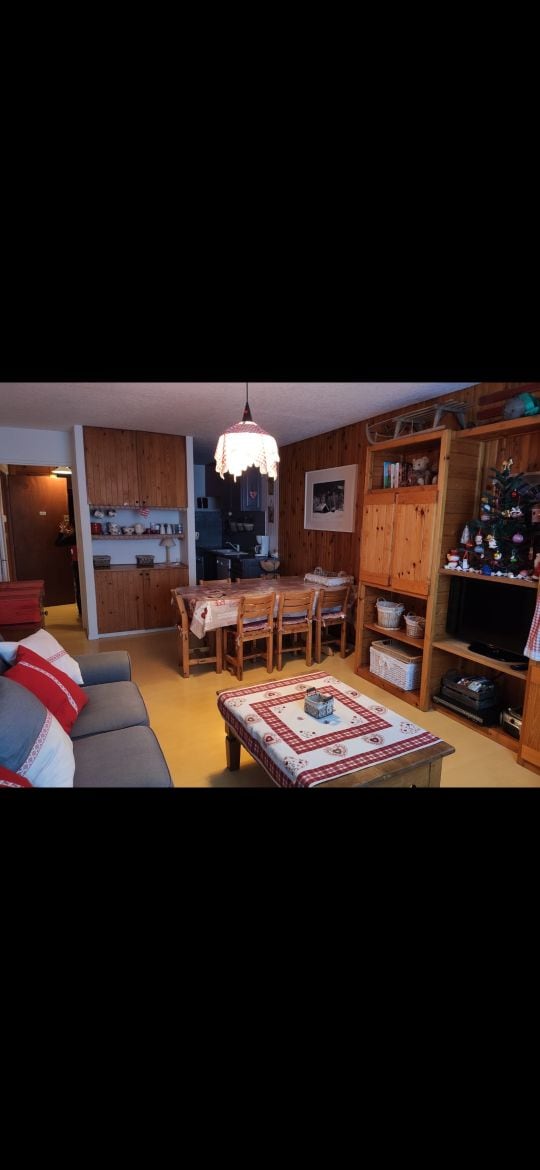 på 1850m højde, lille studio 21m2 renoveret, med en sovesofa til et par og en lille seng i højden til et barn fra 6 til 14 år), veludstyret og meget funktionel sydlig med meget smuk udsigt og balkon uden overfor, rolig og tæt på skiløjper og vandreture, og fra centrum af stationen til fods. den lille lejlighed er KUN TIL ET PAR OG ET BARN og er IKKE EGNET TIL PERSONER MED NEDSAT MOBILITET STUDIO 1. sal LES LAUZIERES lejlighed 202. for enden af Rue des Soleils