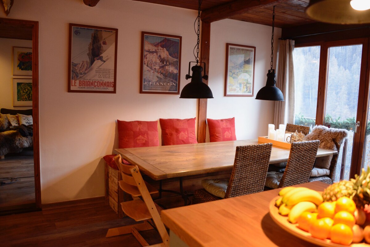 Luksuriøs toetagers lejlighed med rummelig sydvendt terrasse, der vender ud mod Luc ALPHAND-banen. Oplev det om sommeren og om vinteren. Tæt på faciliteter (butikker, shuttles...) og pisterne. 10 minutter fra Briançon og Bains de Monetiers. Ideel til familier eller venner, da der er 3 soveværelser og 2 badeværelser. Mange faciliteter (udstyret køkken, babysæt, babyseng og høj stol, bjergkøkkenapparater) Der er skiskabe med slæder. Luftfugter til dit velvære