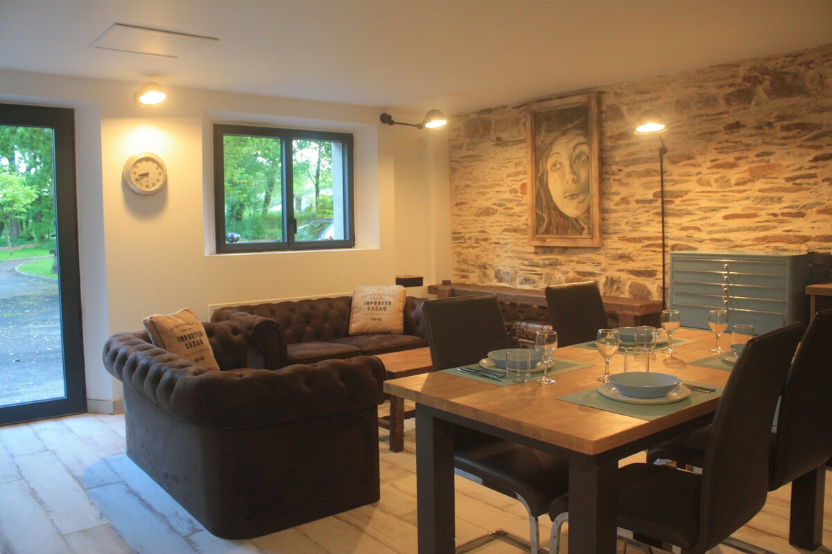 1 km fra Nantes-kanalen i Brest, 1 km fra Guerlédan-dæmningen og 1 km fra byen St Aignan, veludstyret studie for enden af en bondegård med separat indgang, meget rolig beliggenhed. Ideel til cyklister, trailere eller vandrere, alene eller par. Der er mange vandrestier, mountainbike-stier og vandaktiviteter i nærheden. Vi er også 50 minutter fra den lyserøde granitkyst og 1 time fra Golf du Morbihan.