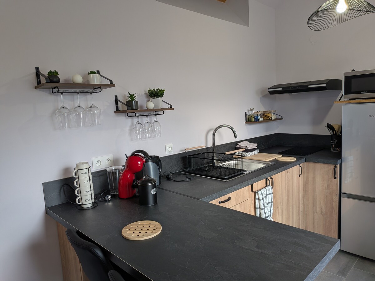 Uafhængig lejlighed, der er fuldstændig renoveret inde i en lang stenbygning, i hjertet af det rolige Mayennaise-landskab. Stue med internet-tv, køkken med alt det nødvendige (køleskab, kogeplader, mikrobølgeovn, kaffemaskine ...) Seng 160 Stort brusebad, separat toilet. Tilgængelig på samme sted Lejlighed til 2/3 personer (https://airbnb.fr/h/appartementlapetitenoerie), og gîte til 11 personer (https://airbnb.fr/h/gitelapetitenoerie)