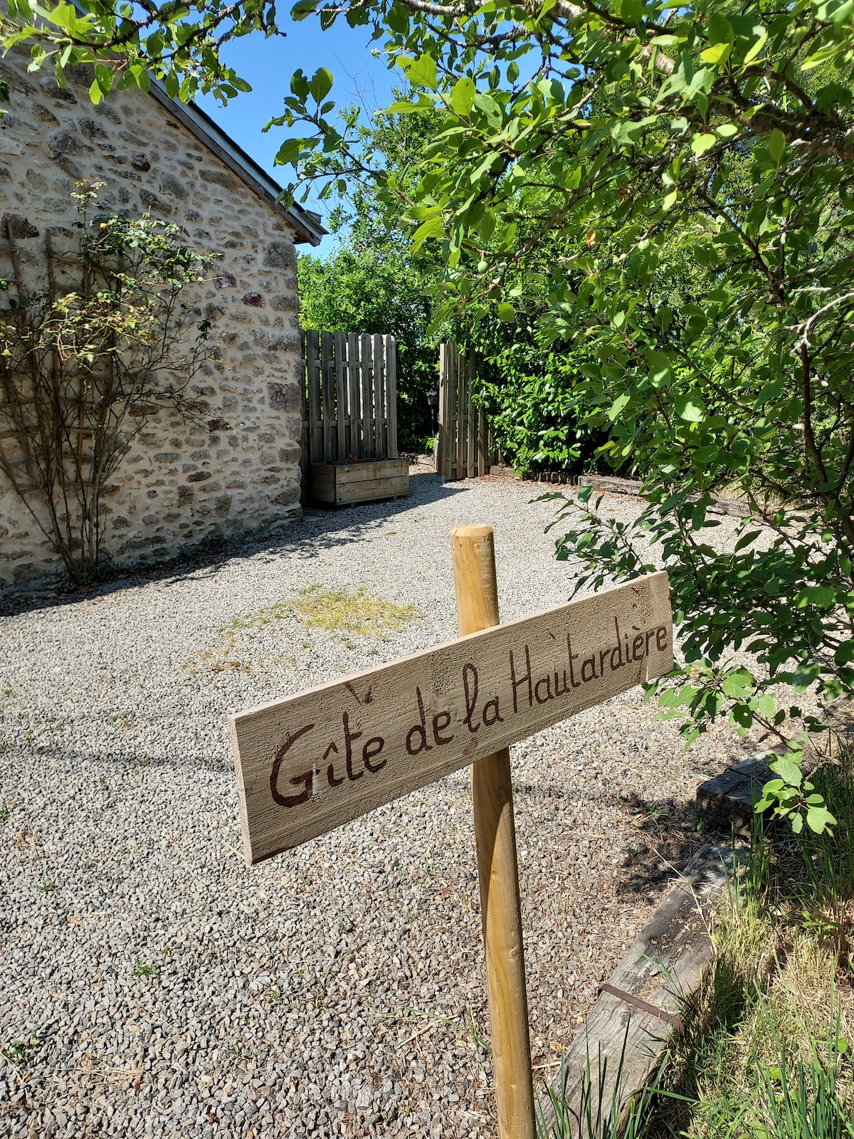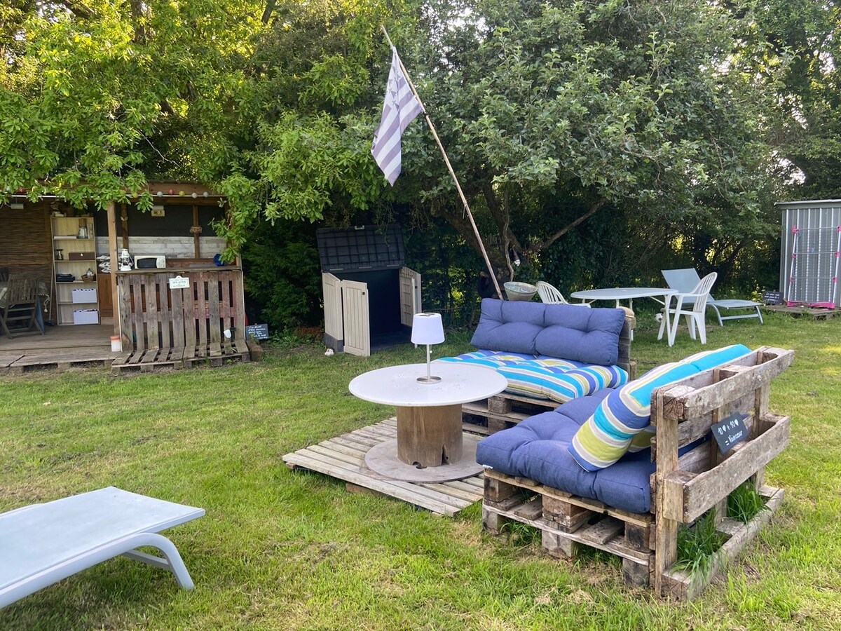 Tag en pause, slap af i dette gamle værksted, tidligere en hytte til kreativitet og gør-det-selv. Jeg bevarer bevidstemt den enkle ånd i alle bekvemmeligheder, tilbage til det væsentlige, tage sig tid, uden komplikationer. I midten af min have er hytten placeret i skyggen under lindetræet, med fuglesang, den grønne spæts hak-hak-hak, storkenes flyvning ... et ophold i ro. Et meget roligt sted på landet, der er let at finde, tæt på Nantes, ikke langt fra kystrækningen.