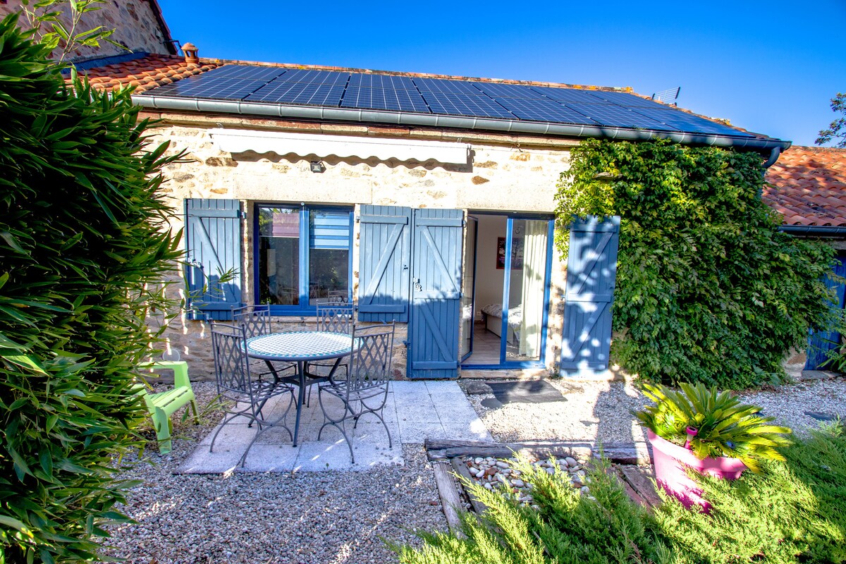 I stueetagen i vores hus, ligger et studie på ca. 25 m2 i perfekt stand og fuldt udstyret med sengetøj og håndklæder. Du kan parkere i indkørslen, og adgangen er via terrassen, der hører til lejligheden. Bemærk: Vores udendørsområder (haven) er stadig under opførelse. 5 minutter fra supermarkedet U og tæt på RN165 (Nantes eller St Nazaire). 15 minutter fra Nantes i bil. Ingen badekar, kun brusere. Vi er i et landligt miljø. Til din rådighed for alle spørgsmål
