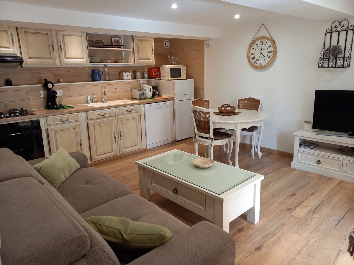 Velkommen til "Boot House", HELT NY kokon på 45 m2, smukt indrettet og KOMPLET UDTYRET! Når du kommer ind, finder du et tv-hjørne med fiberforbindelse. Et smukt bord med plads til 4 personer. Et fuldt udstyret køkken (ovn, el-kogeplade, emhætte, vaskemaskine, opvaskemaskine, køleskab, ...) som vil danne den nødvendige komfort til din ro. Gå videre, og du finder til venstre badeværelset og lige ud et dejligt soveværelse med en dobbeltseng på 160 cm med et stort skab!