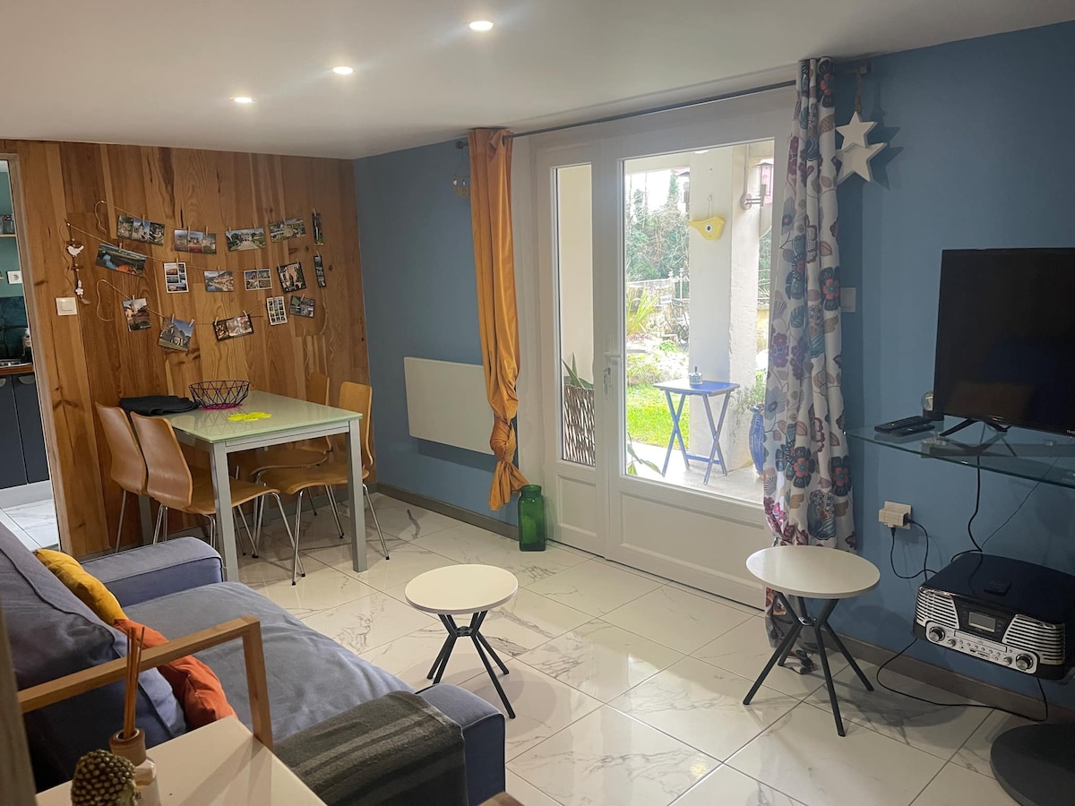 We will be delighted to welcome you to this 24 m2 studio, functional, all comfort, renovated, in a quiet, independent area, next to our residence, 10 minutes walk from the centre of Bergerac. It is equipped with all amenities: double bed, small living room, kitchen, independent bathroom, Freebox with wifi, TV, air conditioning, Plancha on demand...etc. . Outdoor relaxation area. New sheets, duvet and towels are provided. Free parking. All services nearby Andréa / Gérard