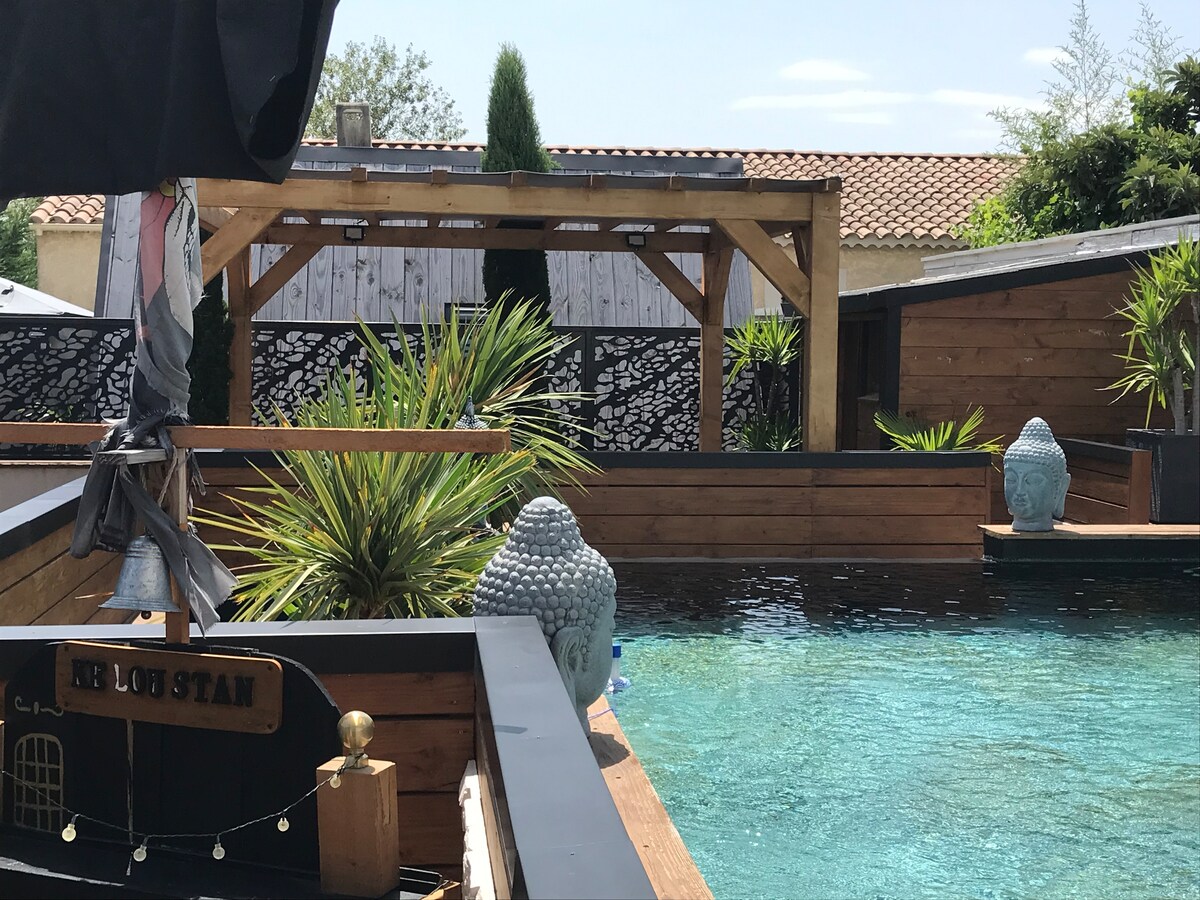 Ejendommen "Terre de Bohemia" tilbyder dig denne elegante hytte i hjertet af en gammel manade, der præsenterer alle moderne bekvemmeligheder 20 minutter fra Nîmes og 25 minutter fra strandene, beliggende i en lille Camargue. Du vil blive forført af privatlivets fred, der tilbydes af denne bolig med sin private terrasse med udsigt over haven, et stenkast fra poolen. Christel og Frédéric vil med glæde dele de mange steder og aktiviteter i området med dig.