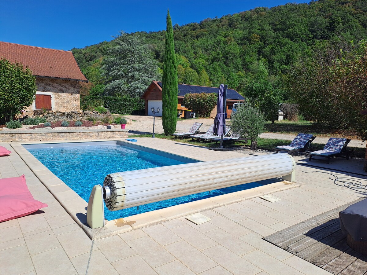 Stille ejendom 2 skridt fra Crémieu, kom og lad op i en smuk ramme. Stort område, swimmingpool. 10 minutter fra Bugey, 20 minutter fra lufthavnen, 30 minutter fra Parc OL. Intimitet eller venlighed, vi vil være glade at byde dig velkommen. Vi tilbyder et privat område på 50m² med: - 1 dobbeltseng - 2 enkeltsenge - 1 sovesofa - Privat brusebad + separat toilet - Privat køkken Sengene er på en hems, undtagen sofaen. Perfekt til par, forretningsrejsende, venner og familier. Check ud kl. 08.00 på hverdage