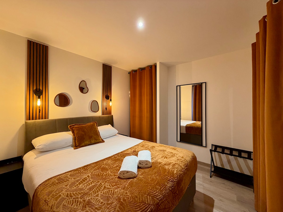 Kom og oplev vores bolig, der ligger 30 minutter fra Lyon Beliggende tæt på Halles de Crémieu, butikker og restauranter. 1 Jacuzzi 2 pladser 🫧 1 Sauna 1 Kingsize-seng 🛏 1 Køkken med udstyr 1 Badeværelse med separat toilet 🚿 1 Smart-tv 📺 1 El-kedel 1 kaffemaskine ☕️ 1 vinkælder 🍷 1 Mikrobølgeovn Aircondition ❄️ Wi-Fi-forbindelse Det er også muligt at bede os privat om en romantisk dekoration 🌹 Ikke-rygerbolig 🚭 Kæledyr ikke tilladt 🐾❌
