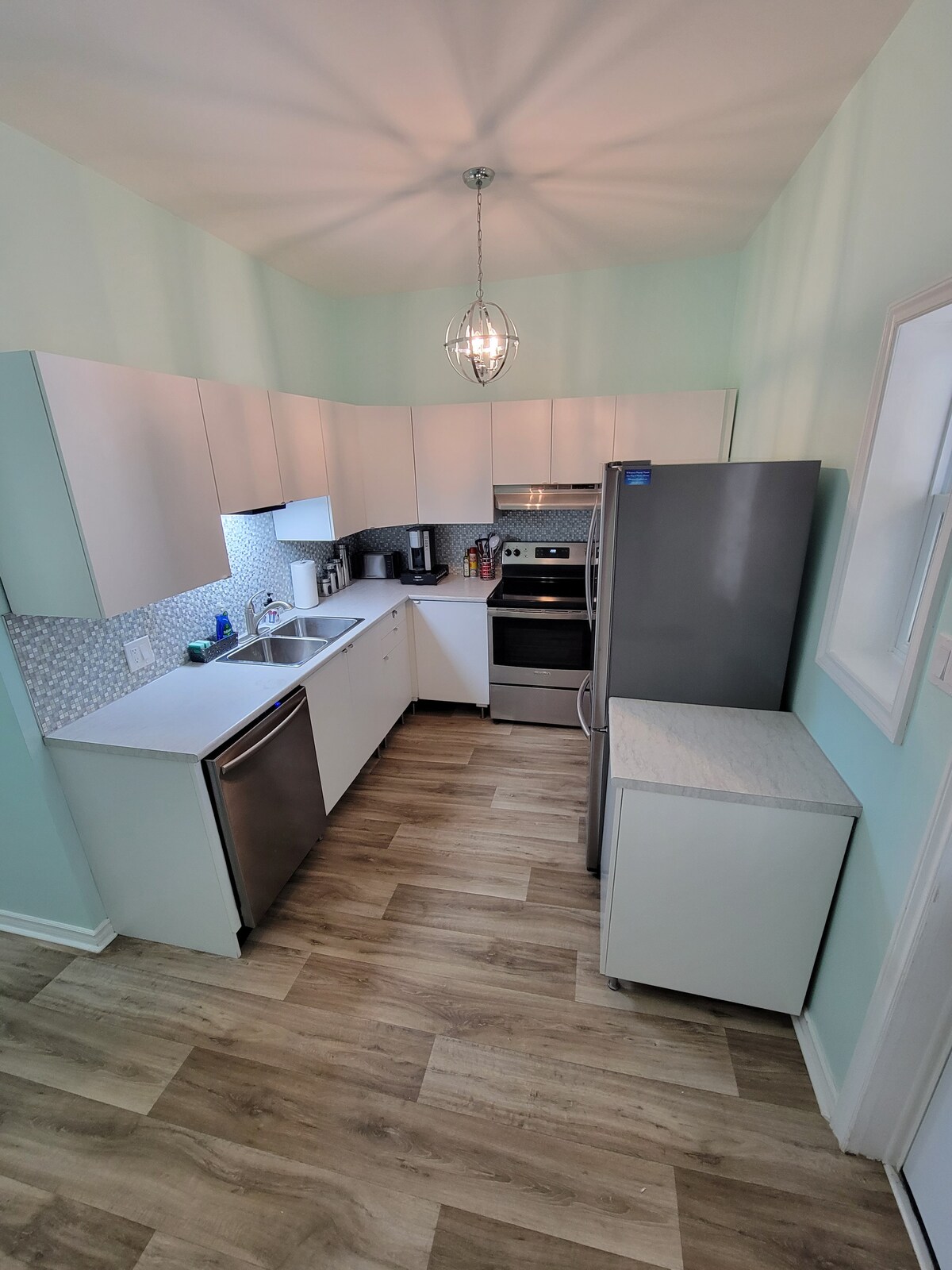 Nyd nem adgang til alt fra denne centralt beliggende 800 kvm hyggelige lejlighed i Saint John. En 5 minutters kørsel fra både Reversing Falls og historiske Uptown Saint John. Enheden har 2 rummelige soveværelser, begge med queensize-senge. En moderne spise i køkkenet flyder ind i en rummelig stue med en komfortabel sofa med indbyggede lænestole. For underholdning har stuen et 50 tommer 4K smart-tv. Badeværelset har badekar/bruser med aftageligt hoved.
