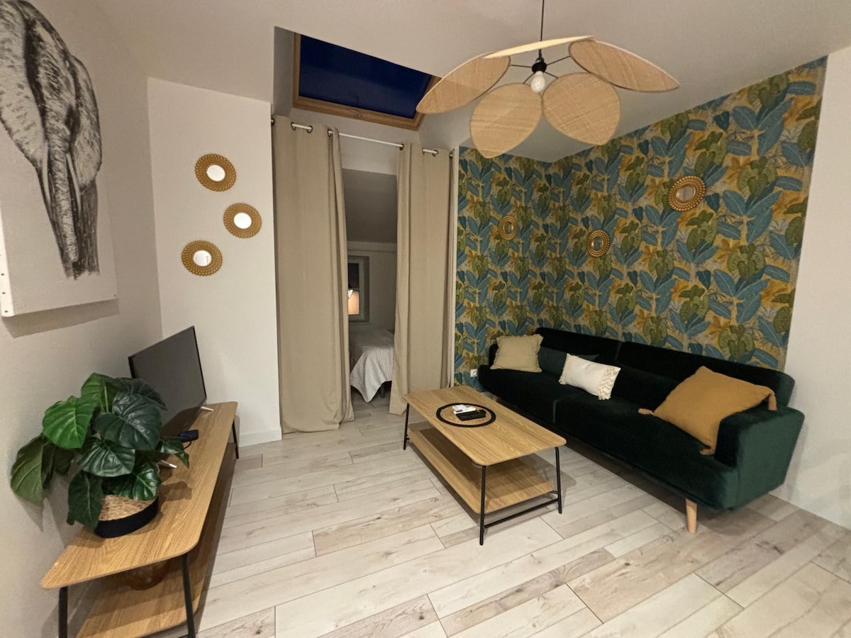 Tag hjem til denne lejlighed i downtown Macon. Renoveret helt for at tage dig til Stillehavsøerne: grøntsagsvæg, hængende æg, trævask... en rigtig kokon til at slappe af. Du vil have til din rådighed 60 m2, herunder en stue, et læseområde, en spisestue, et separat toilet, et køkken samt en hovedsuite med sit grønne marmorbadeværelse. 🔐Indtjekning uden vært 🍬Godbidder Der er 🛌 sengetøj og håndklæde Nespresso-kapsel☕️