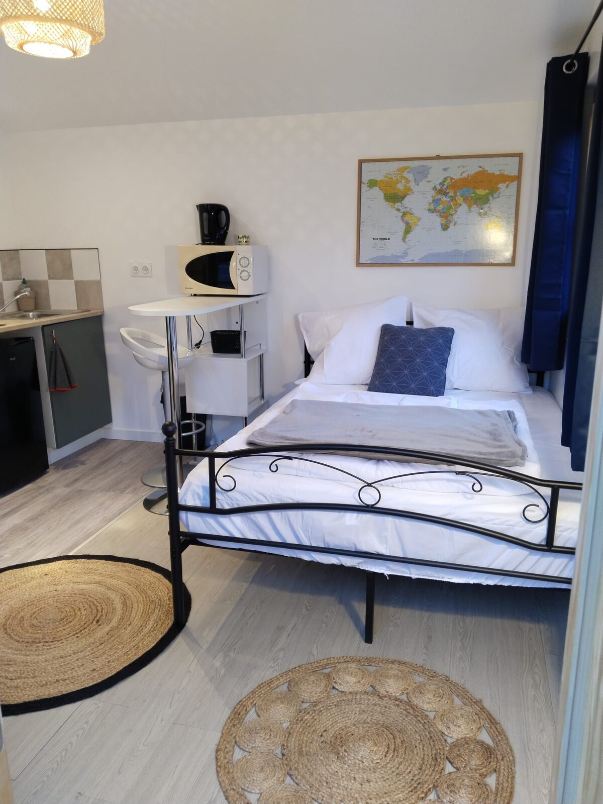 Slap af i denne unikke og rolige bolig i Francport i Choisy au bac, få skridt fra Laigue-skoven og 5 minutter til fods fra Carrefour de l'Armistice. Mickael og Dorothée byder dig velkommen i deres hjem i en 28 m2 stor lejlighed, der ligger 10 minutter fra Compiègne-slottet og 25 minutter i bil fra Pierrefonds-slottet. Aisne-floden løber et par hundrede meter væk, og vandrestierne ligger i nærheden af boligen. Et ideelt sted at slappe af og besøge Compiègne.