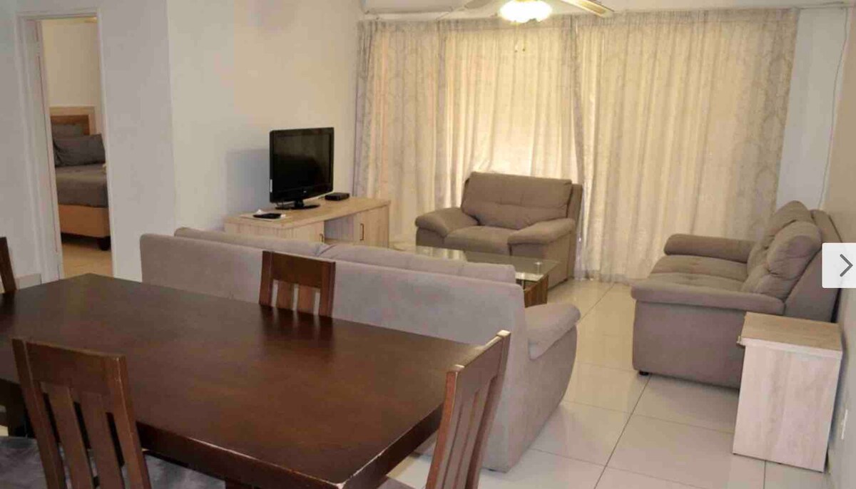 To soveværelser, to badeværelser familiebolig. Fuldt soldrevet. Loungen fører ud på terrassen med braai og møbler - udsigt over de dejlige haver og den utæmmede busk i iSimangaliso vådområder. Fuldt udstyret køkken og spiseplads. Vaskemaskine. Gratis daglig rengøring. Gratis wi-fi. Swimmingpool. Sikker parkering med din egen låsegarage. Beliggende i Beach Road - det er inden for gåafstand af havet. Det ideelle sted til en afslappende ferie.