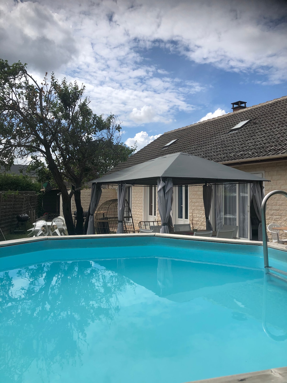 Stort meget veludstyret hus med udstyret køkken og udstyret med 2 badeværelser 2 toiletter, en stor stue på mere end 45 kvadratmeter med pejs (indsats), en stor have med ladeum teak terrasse,grillgynger, over jorden teak pool ( ikke opvarmet). Huset ligger i et roligt beboelsesområde tæt på butikker forlystelsesparker 5 minutter fra de store myrer, mulighed for at gå i skoven Huset ligger 45 minutter fra Paris. Ideel til et ophold med familie eller venner.