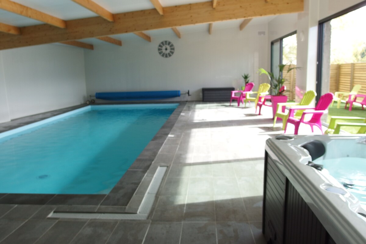 Kom og nyd hele året rundt med familie eller venner denne komfortabelt møblerede lejlighed på 120 m2 med privat indendørs swimmingpool, der er tilgængelig 24/7 direkte fra stuen. Opvarmet svømmebassin ÅRET RUNDT til 28° udstyret med en bænk. Beliggende 10 minutter fra Dinan og 30 minutter fra St-Malo og Dinard. Komplet udstyr: Wi-Fi, stort 140 cm tv, alle nødvendige husholdningsapparater. Sengetøj og håndklæder leveres (sengene er redt før din ankomst). Ikke badehåndklæder til poolen.