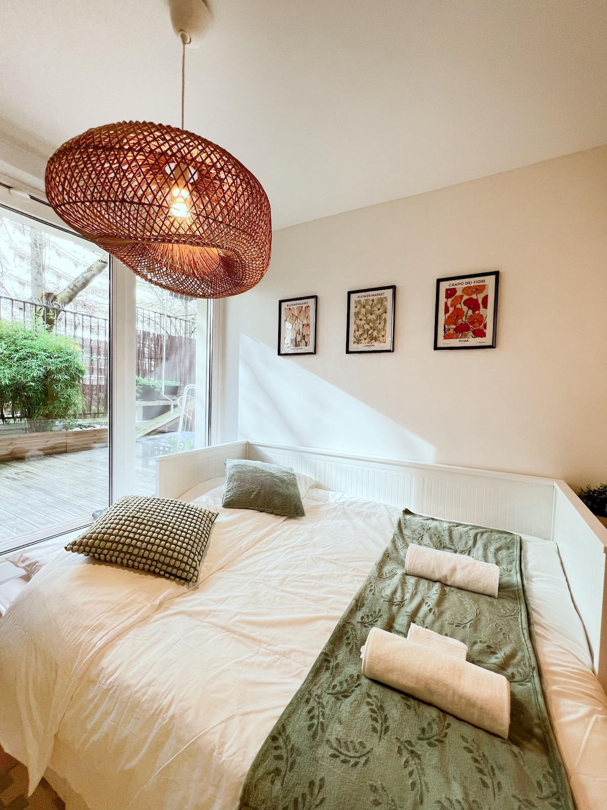 Elegance og komfort venter dig i denne ekstraordinære 30 m² studio med et elegant design, 28 m² terrasse med solsenge til to. Med hydromassagebruser, hjemmebiograf, IPTV og fiberinternet, sikker adgang via telefon, alt er designet til din komfort. Stille, butikker og transport i nærheden, en ideel beliggenhed i Pavillon-sous-Bois, let forbundet med Paris, CDG, Parc Astérix og Disneyland. Ideel til romantiske smutture, eksklusive ophold eller forretningsrejser.