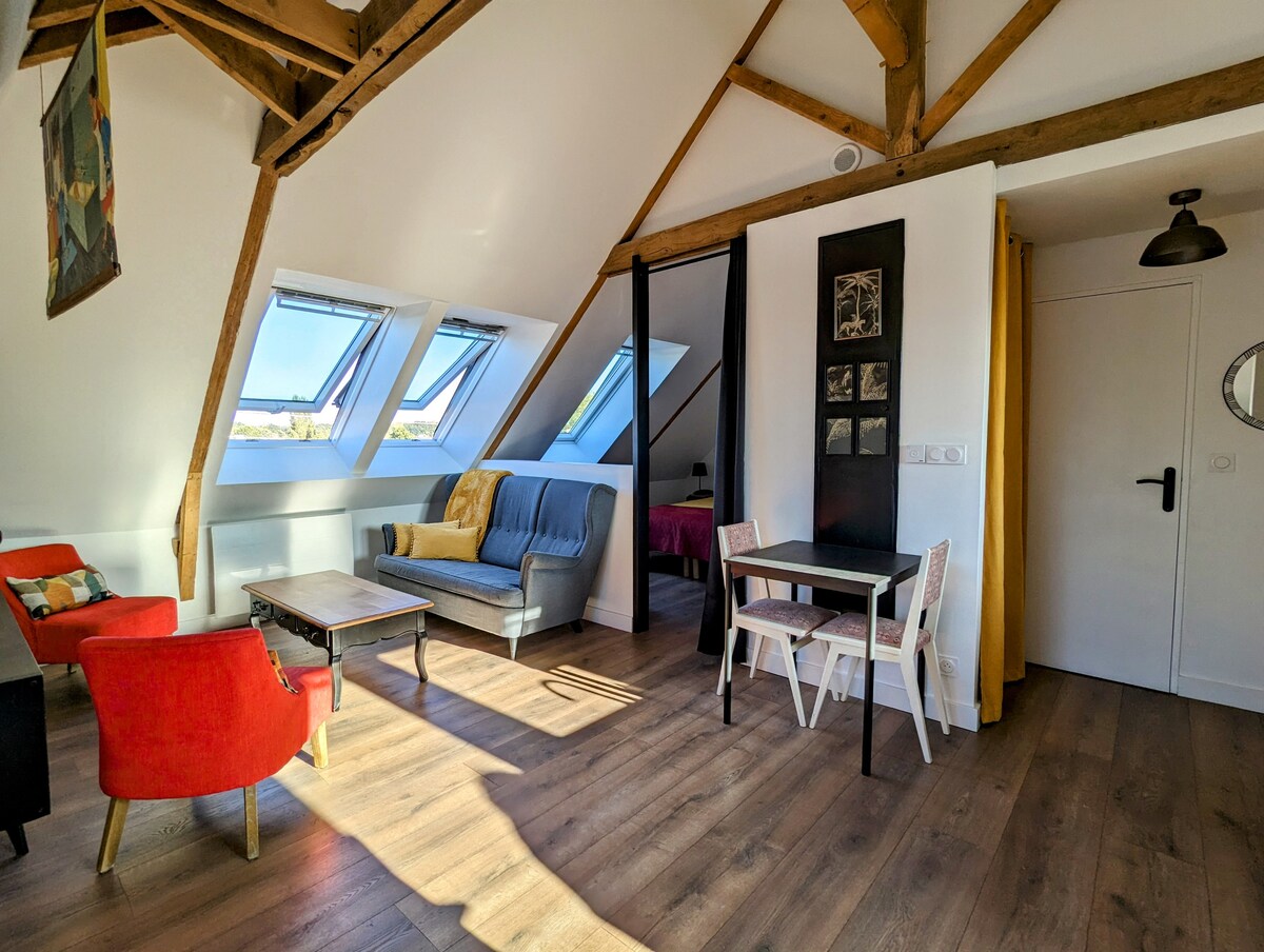 I en grøn og rolig omgivelse i et smukt slot fra det 15. århundrede, beliggende ved indgangen til vores smukke middelalderby Dinan, vil du bo i en loftslejlighed på 54m2 i stueetagen i hovedbygningen. Du vil opdage dens storslåede monumentale pejs og du vil blive fortryllet af denne autentiske bygning, der er fyldt med historie med alle moderne bekvemmeligheder i hjertet af en smuk 3 hektar park med sin dam kun 15 minutter til fods fra det historiske centrum eller 3 minutter med gratis bus.