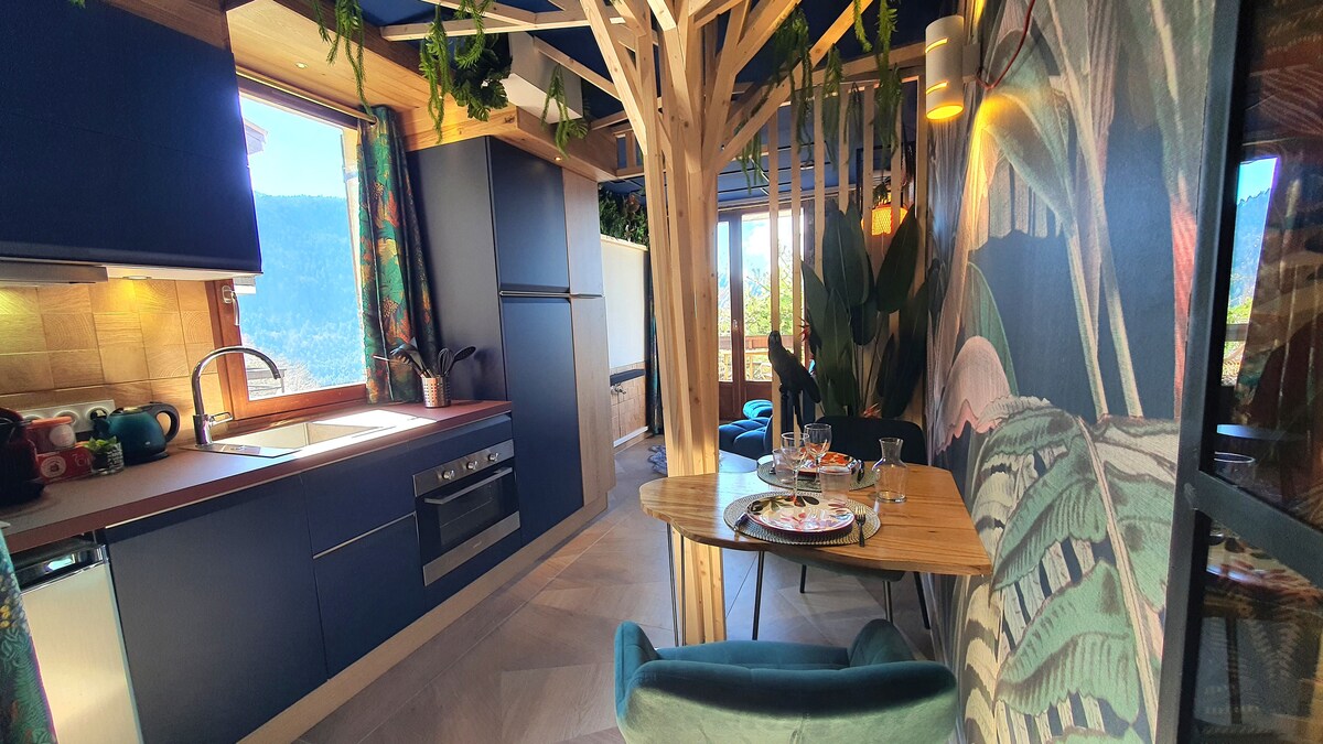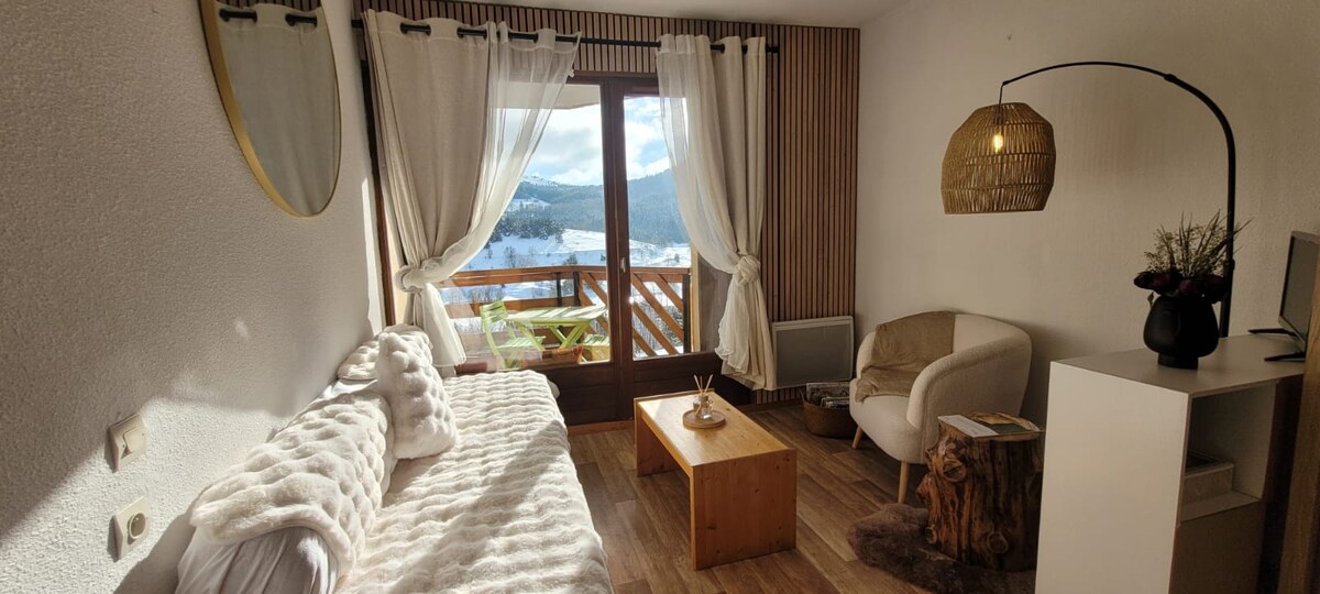 Studio med soveområde og ægte køkken, renoveret i 2025. 5 minutter (i bil) fra Monteynard-søen, 25 minutter fra Grenoble og 25 minutter fra det første skisportssted (Gresse en Vercors). Meget rolig beliggenhed, mange vandreture (himalayabroer) og vandaktiviteter.