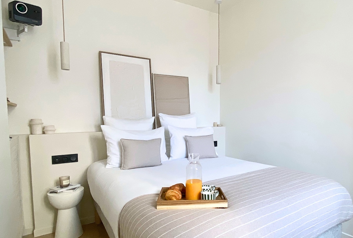 Velkommen til denne charmerende hybel, der er ideelt beliggende i Saint-Ouen-sur-Seine, kun et stenkast fra Paris! Denne hybel er perfekt til rejsende, par eller folk, der arbejder hjemmefra, og kombinerer komfort, modernitet og bekvemmelighed. Optimeret og lyst rum Udstyret køkken (kogeplader, mikrobølgeovn, kaffemaskine, service ...) Moderne badeværelse med bruser og håndklæder Hurtig Wi-Fi Nem adgang til transport: Metro i nærheden, linje 13 mindre end 5 minutter og linje 14 6 minutter