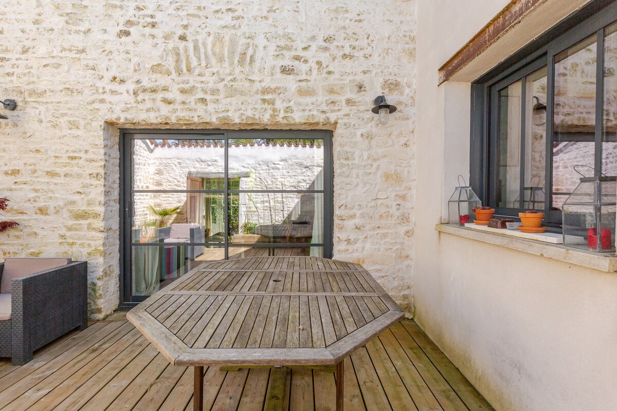 Denne lejlighed, der for nylig er blevet renoveret, har en original og marine indretning, der straks vil få dig til at føle dig hjemme i Charente Maritimes atmosfære. Du har et stort opholdsrum, et udstyret køkken, et stort soveværelse, stort badeværelse, separat toilet, opholdsrum-kontor (gratis WiFi), parkeringsplads (med plads til 2 køretøjer eller anhænger) i en privat og lukket gård, have med bord (grill). De udendørs områder er under renovering, men det forhindrer ikke, at du kan slappe af.
