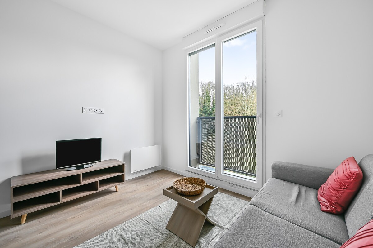 Komfortabel lejlighed med balkon, hyggelig, lys og funktionel. Denne 29 m² store lejlighed i Évreux er ideel til dit professionelle ophold eller fritidsophold. Der er plads til 2 personer med stue, dobbeltseng, udstyret åbent køkken og moderne brusebad med toilet Nyd et bekvemt ophold med privat parkering i boligen Indtjekning uden vært med en nøgleboks og fleksible ind- og udtjekningstidspunkter på anmodning, så du får mere frihed Kom og sæt dine kufferter ned, og få et behageligt og bekvemt ophold