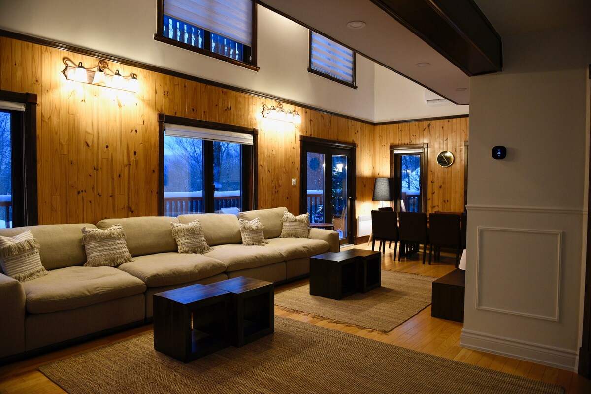 Chalet de l'Orée du Bois Joli ligger i Val-David og har udsigt over trætoppene! Sæt dig i spaen for at betragte stjernerne! Gå på snesko på den 4000 kvm store ejendom, der ligger langs skråningerne af Mont Alta. Slap af i vores kæmpe indendørs hængekøje og nyd magien i denne træhavn! Vandreture, skiløjper, tre smukke strande og mange aktiviteter og attraktioner i området venter på dig.