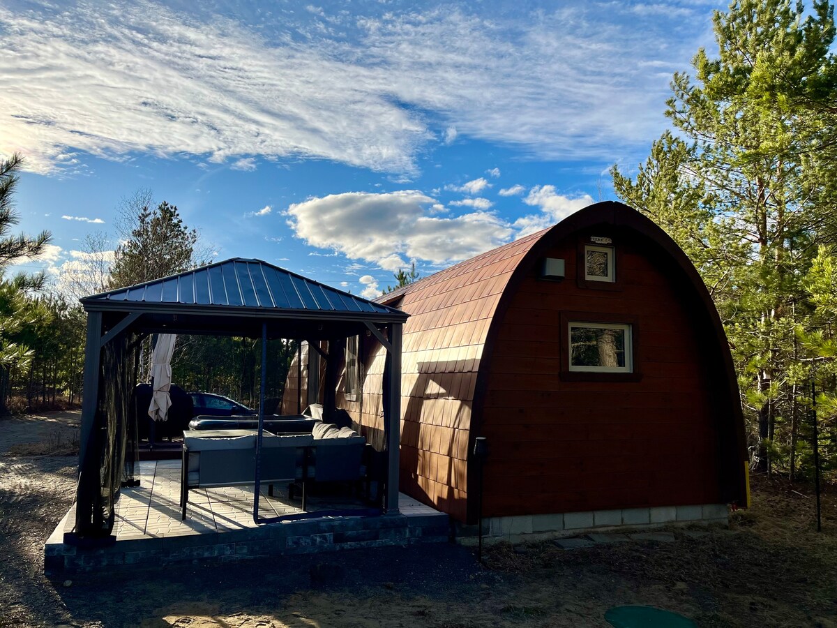 Small moderne warm Cottage! Come relax, unwind and fully rest! Be surrounded by several pine trees. This cottage can greet 2-4 adults (+1 child). You have WiFi and electric fireplace. Its time to disconnect from your daily life with its SPA as well as an outdoor GAZÉBO to fully enjoy it while watching the beautiful views of the mountains! Fishers, snowmobilers and ATV’s its the ideal place for nature lovers. Motorcyclers you will enjoy the road! Access to the river is a 5 min walk! Book Now
