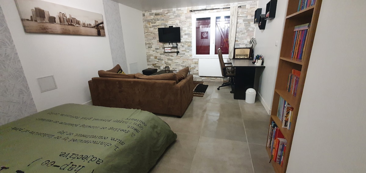 Vores nyligt renoverede mini-studie ligger kun 5 minutter fra landsbyen Martyr d'Oradour sur Glane, 2 minutter fra afkørslen N141, 15 minutter fra centrum af Limoges, og byder dig velkommen til et ophold i hjertet af Haute Vienne. En lille hyggelig kokon til at tilbringe en pause med din elskede, venner eller til arbejde ...