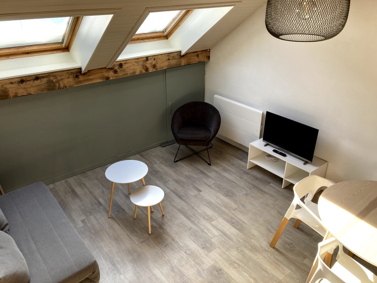 Fantastisk rolig lejlighed, helt ny, hyggelig, med parkeringsplads foran boligen. Sydvendt, du vil have en dejlig terrasse og en privat have (udsigt over bjergene), du vil nyde et komfortabelt soveværelse med en stor dobbeltseng, en stue med fuldt udstyret tekøkken og et badeværelse med separat toilet. Du vil være 45 minutter fra de første skisportssteder eller Grenoble, og kun 25 minutter fra Chambéry og Albertville. Motorvej 5 min.