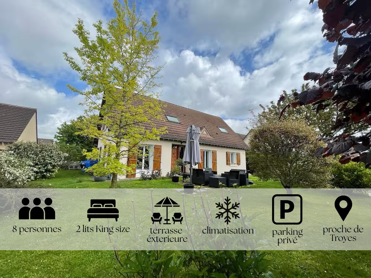 Ti minutters kørsel fra Troyes centrum Dette fritliggende hus på 70 m2 har aircondition og består af et udstyret køkken, der er åbent til en stue, 2 soveværelser med 160 x 200 senge med tv, et brusebad og et separat toilet. Du nyder godt af en 400 m2 fuldt indhegnet have.Der er sengetøj og håndklæder. Advarsel: INGEN FESTER - INGEN INVITATIONER til personer uden for lejeboligen - nabolaget skal respekteres - IKKE-RYGER bolig - Wifi