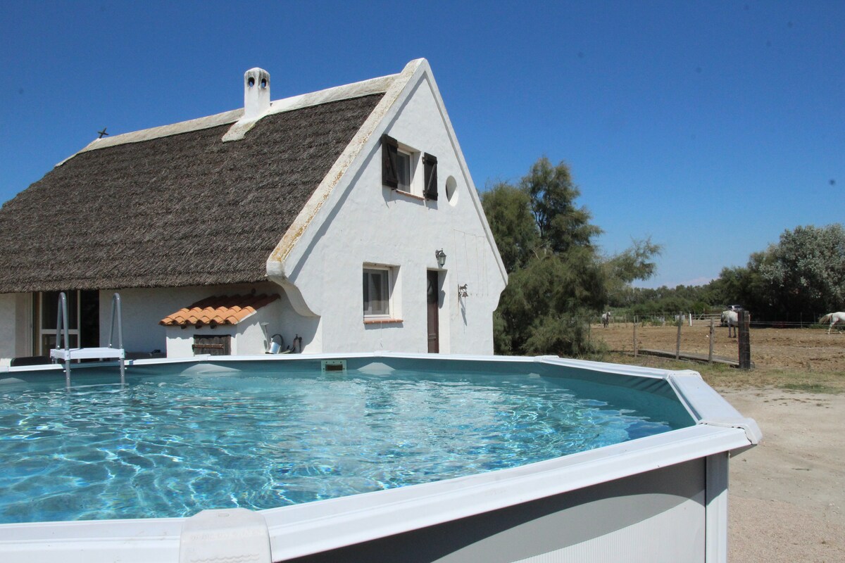 Traditionelt hus i Camargue klassificeret 4 **** møbleret turisme, uden overforliggende hus, med udsigt over søen, omgivet af en privat park med parkering. En oase af fred, ideel til at tilbringe et par fredfyldte og afslappende dage i naturen. Beliggende 900 m fra landsbyens centrum og dens strande. Hovedvejen passerer 50 m i fugleflugt. Man hører ikke noget inde i huset, når vinduerne er lukkede, men i haven kan man høre bilerne.