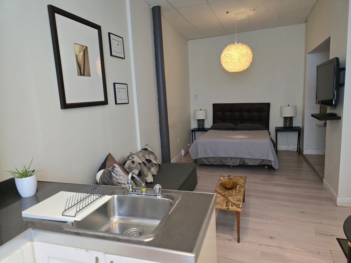 Feel home at this new condo located in beautiful Île d'Orléans. The place is perfect for a relaxing retreat or as a base for remote work. It has minimalist design & quite spacious. HUGE outside balcony to enjoy view & sunsets. It is equipped with a functional kitchen, spacious bathroom, AC & high ceilings. It is a corner unit with no neighbor above or below (VERY quiet), so you can enjoy a perfect sleep away from the city's noises. Parking is easy and conveniently located next to the unit.