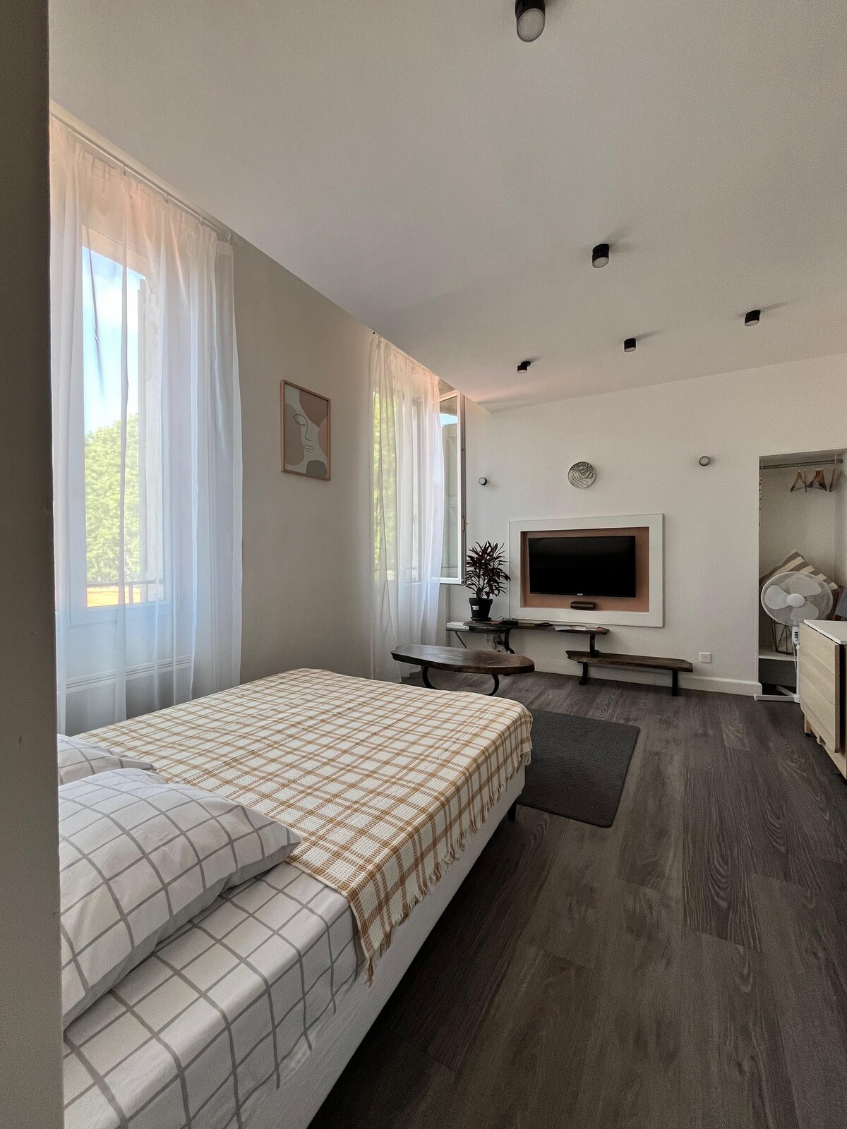 Magnifique studio lumineux au cœur du village de Salernes avec de belles vues sur les montagnes. Situé à 3 min à pied de la baignade et de la rivière, 20 min en véhicule du lac Saint-Croix et 25 min de Gorges du Verdon. Un grand parking gratuit se trouve à côté de la maison. L'appartement est entièrement équipé - Clim - Lit 140 x 190 cm - Lit bébé pliable - Téléviseur - WiFi - Réfrigérateur - Machine à café - Bouilloire - Micro-ondes - Four - Machine à laver - Fer à repasser
