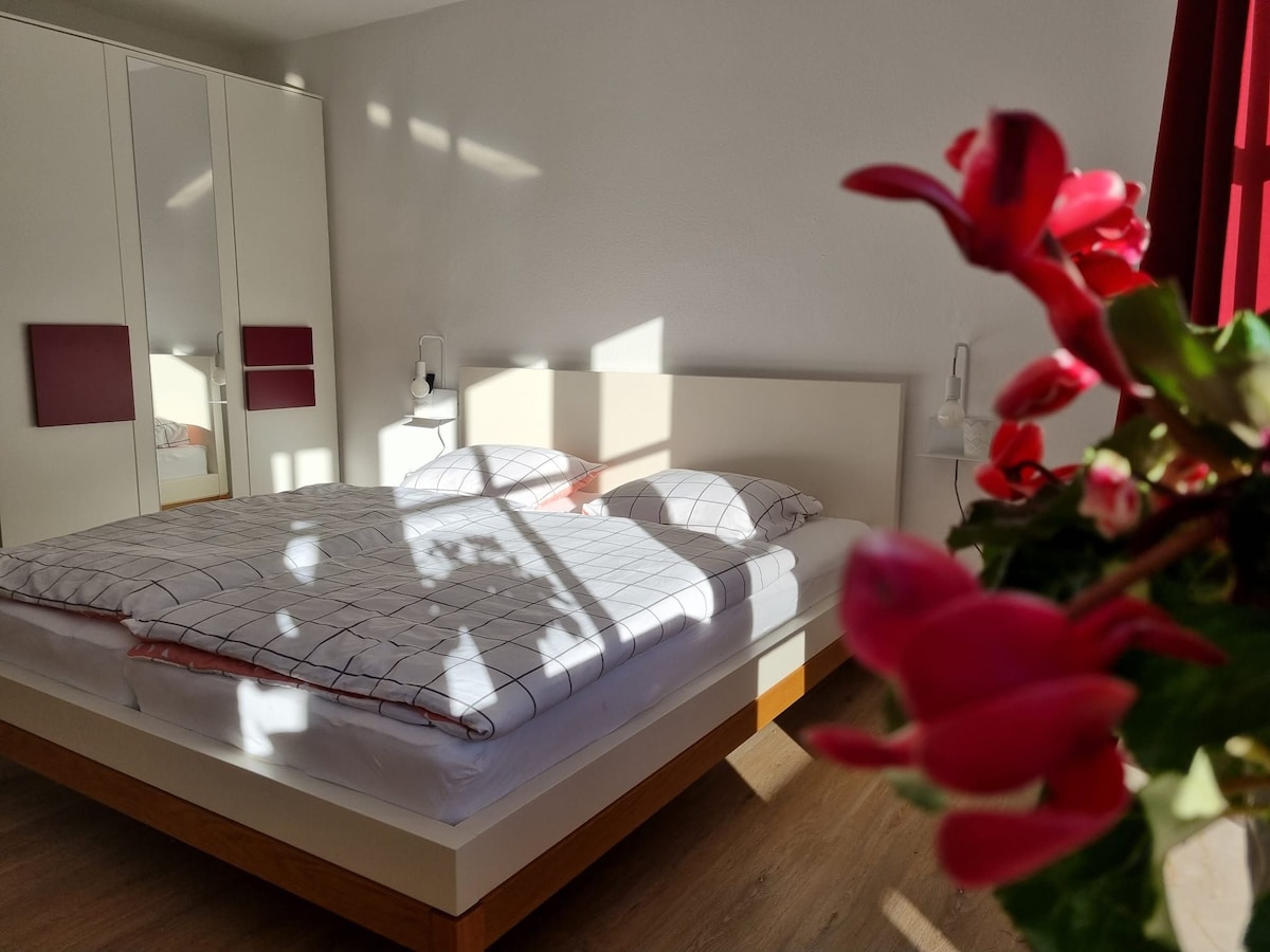 Sunny 65 m² holiday apartment in a prime location with breathtaking views of the Berchtesgaden Alps. The apartment offers a living room with a cosy sofa and TV, a fully equipped kitchen with dining area, a large bathroom with bathtub/shower, and a separate toilet. The bedroom features a double bed made of two single mattresses. Relax in the garden. Free parking and a guest card with local discounts are included – ideal for nature lovers and guests seeking peace and quiet.