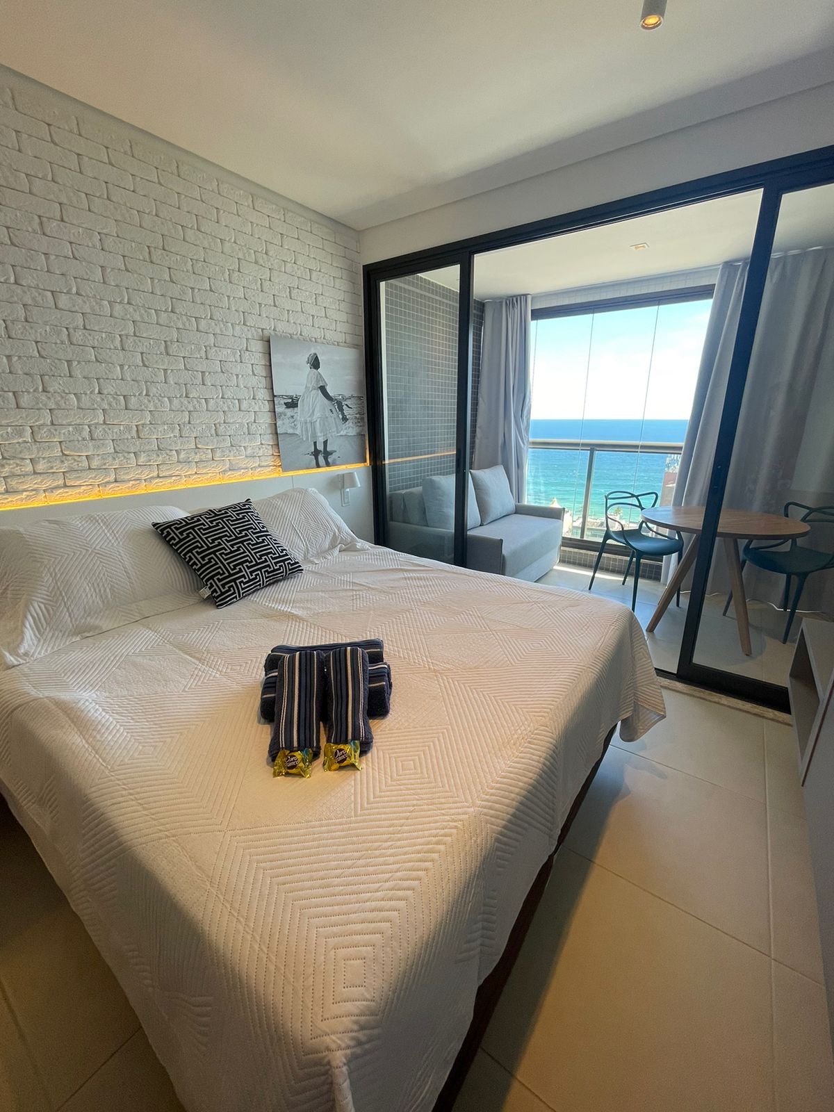 Lejlighed i Barra (turistkvarter) i Salvador, panoramaudsigt over havet, parallelt med karnevalskredsløbet. 2 min gang til Farol da Barra. Soveværelset og stuen har plads til op til 4 personer (soveværelse med queensize-seng og stue med sovesofa). Aircondition og smart-tv i alle rum. Komplet køkken med komfur, ovn, mikrobølgeovn, køleskab, vandfilter, Nespresso-kaffemaskine og alt udstyr Automatiseret af Alexa 1 parkeringsplads, tagterrasse med swimmingpool og fitnessrum Vaskeri i stueetagen RYGNING FORBUDT