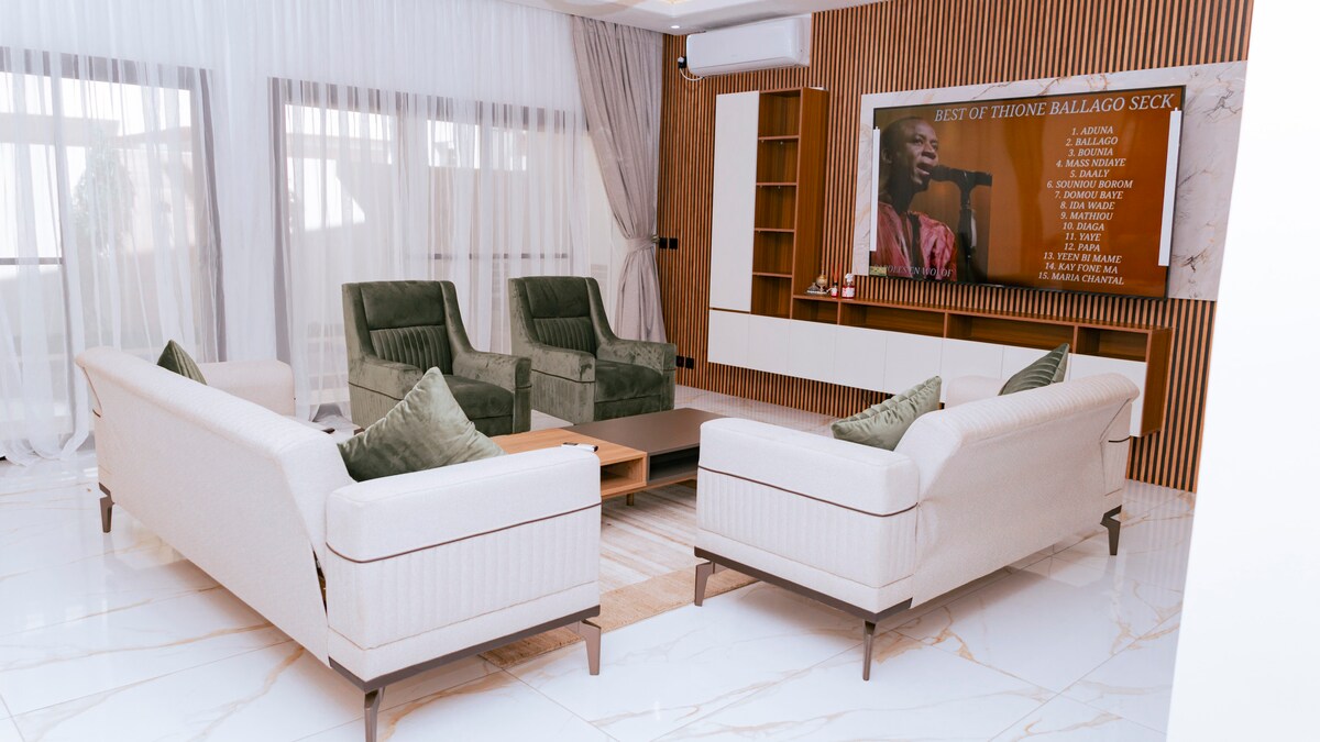 Komfortabel, fuldt renoveret villa (maj 2022) i en moderne og overskuelig stil, beliggende i den smukkeste bolig i Saly. Du kan få adgang til den private strand og den enorme swimmingpool i boligen, der kun er to skridt fra villaen. Solsenge venter på dig. Derudover vil der blive anmodet om en turistskat. Det er 1000 FCFA per nat og per person for voksne og børn fra 16 år. Det kan betales direkte på stedet i FCFA.