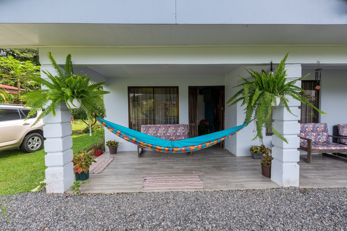 Føl dig som en ægte lokal på Casa La Gula! Dette private hjem ligger kun 4 blokke fra La Fortuna Central Park og er omgivet af grønne områder med åben udsigt over den majestætiske vulkan Arenal. Slap af i hængekøjen, lav mad i det udendørs køkken, eller nyd moderne bekvemmeligheder med aircondition, hurtig wi-fi, fuldt udstyret køkken, vaskeri og privat parkering. Gå nemt til restauranter, butikker og banker, mens du stadig nyder fred, natur og den autentiske Pura Vida-livsstil.