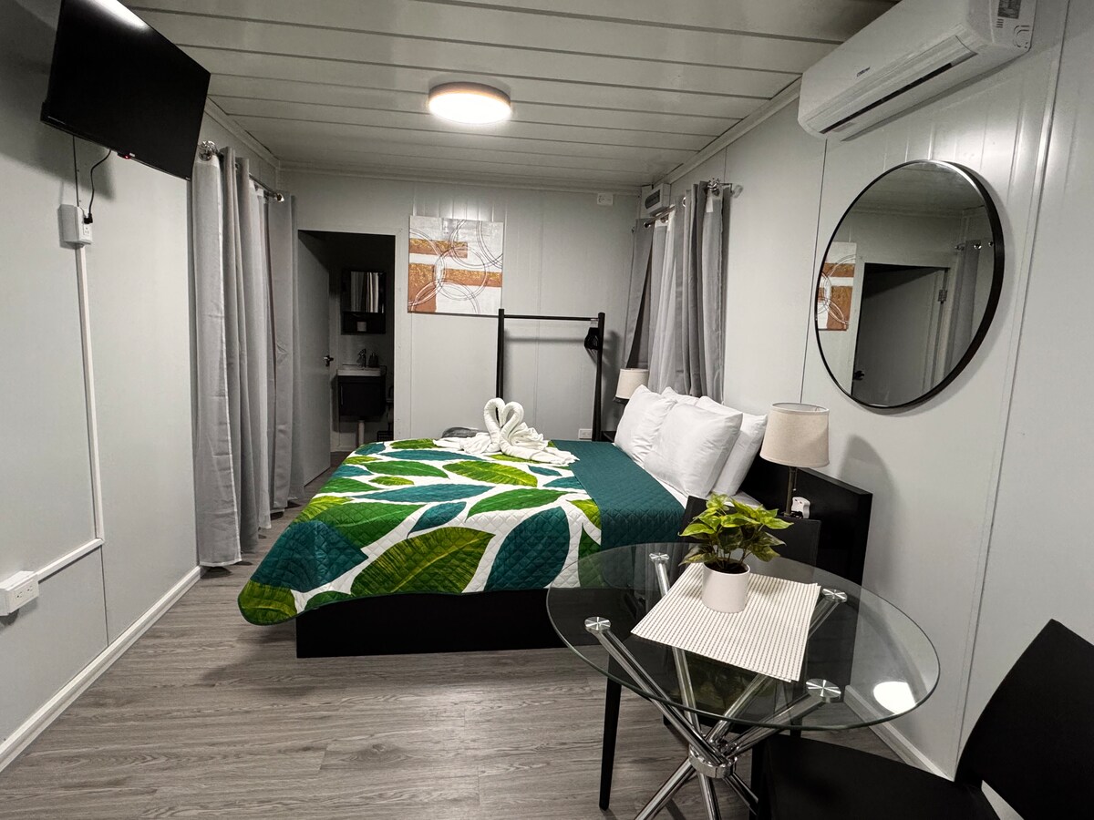Vores moderne containerbolig ligger i hjertet af La Fortuna og tilbyder en unik ferie omgivet af regnskovens frodige skønhed. Dette tilflugtssted, der er designet med miljøbevidste rejsende i tankerne, blander problemfrit moderne komfort med miljøansvar. Uanset om du søger eventyr eller bare et fredeligt tilflugtssted, tilbyder Eco Sanctuary den perfekte blanding af moderne luksus og miljøvenlig livsstil. Book dit ophold hos os, og oplev regnskovens magi som aldrig før!