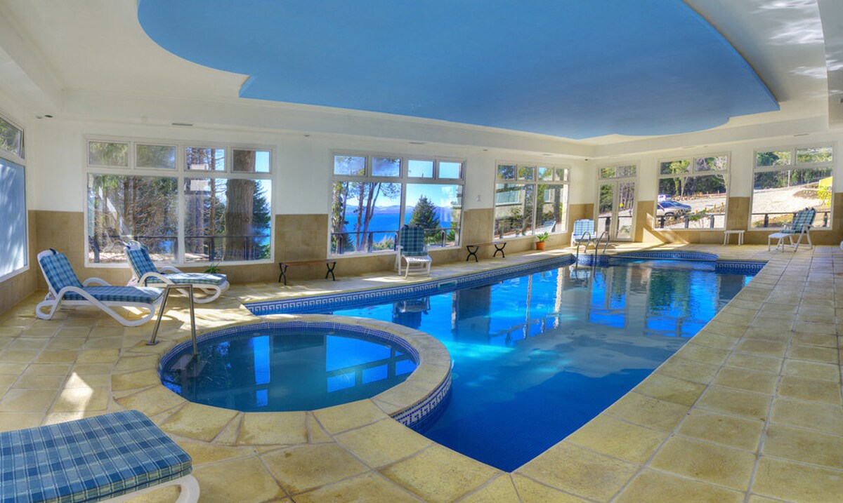 El Hotel se encuentra ubicado en la Avenida Bustillo, a 1200 metros del Centro Cívico, lo que le permite estar cerca de la Ciudad pero alejado del ruido.- Todas nuestras habitaciones cuentan con vista parcial o total hacia el lago, con acceso privado a la costa del Nahuel Huapi.- Piscina climatizada, Desayuno buffet, con elaboración propia en casi la totalidad de lo que ofrecemos.- nuestro patio le permite la experiencia de disfrutar del Parque Nacional, sin alejarse de su habitación.