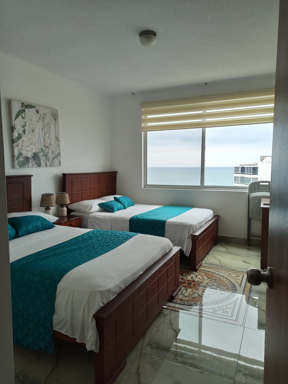 Velkommen til vores paradis ved havet i Playa Murciélago i Manta. Nyd et uforglemmeligt ophold i en rummelig lejlighed med 3 soveværelser og 3 badeværelser. Det store soveværelse har eget badeværelse og havudsigt; de to andre soveværelser har aircondition og udsigt over byen. Bygningen er sikker med døgnåben sikkerhed, kameraer, adgang til adgang, elevator og to store parkeringspladser. Slap af i stuen og køkkenet med havudsigt, eller drik en kop kaffe på balkonen. VI VENTER PÅ DIG!