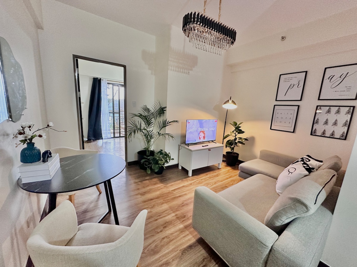 Vågn op til betagende 🌄 bjergudsigt og fantastiske solopgange. ✨ Slap af på den L-formede balkon med hyggelige stole 🍳 Fuldt køkken: komfur, mikrobølgeovn, køleskab, redskaber 📺 Smart-tv med Prime Video og YouTube 🚗 1 km til Kennon Rd 🌳 6 km til Burnham Park/SM 🍎 2 min. GANG til 7-11, frugtboder og jeepney 🅿️ Udpeget GRATIS GADEPARKERING (stramt parkeringsområde) 🚫 Besøgende og kæledyr er ikke tilladt 🆔 Foto-id skal sendes 👥 Basisprisen er for 2 gæster. Tilmeld andre for at se nøjagtige priser.