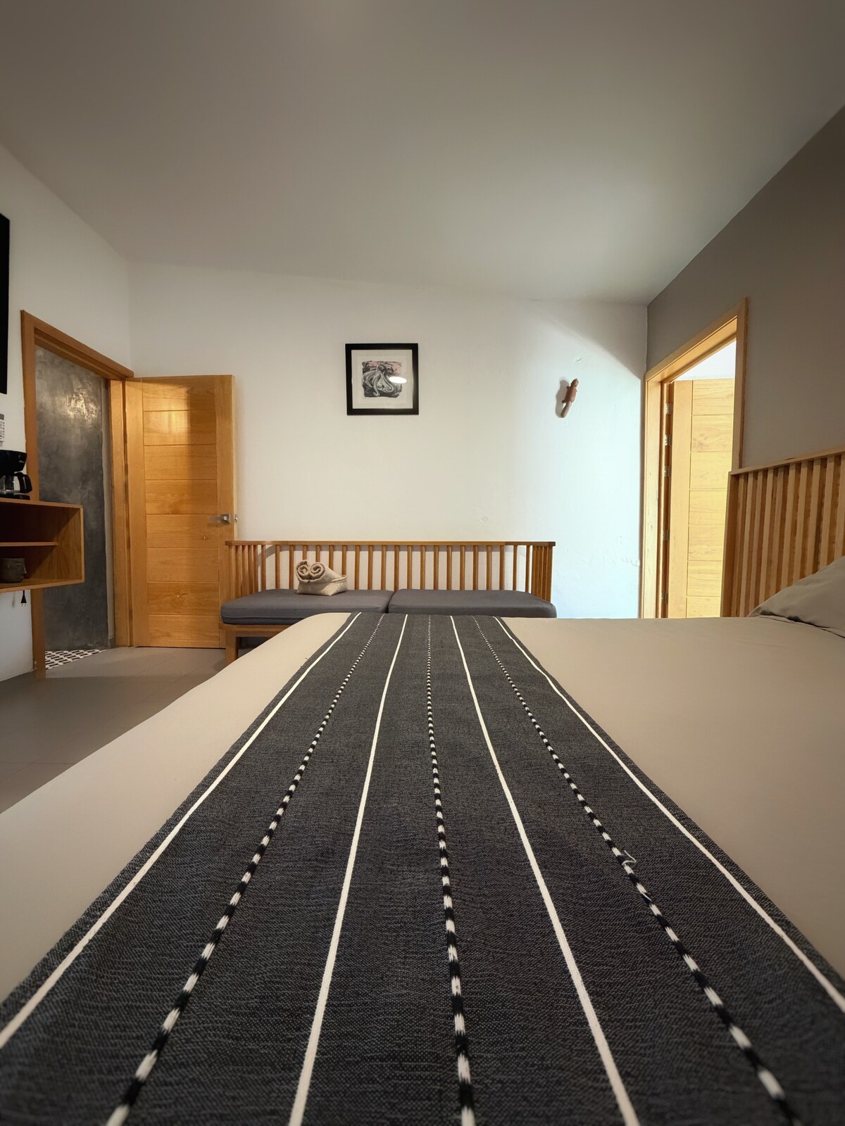 St. Gines is a refined residential project located in San Felipe del Agua, one of the most desirable and tranquil neighborhoods in the northern area of Oaxaca City. Surrounded by nature and framed by views of the San Felipe hills, the apartments offer a calm, elevated atmosphere enriched with original artwork by Oaxacan visual artists. A place designed for guests who value space, culture, and a quieter way of experiencing Oaxaca.
