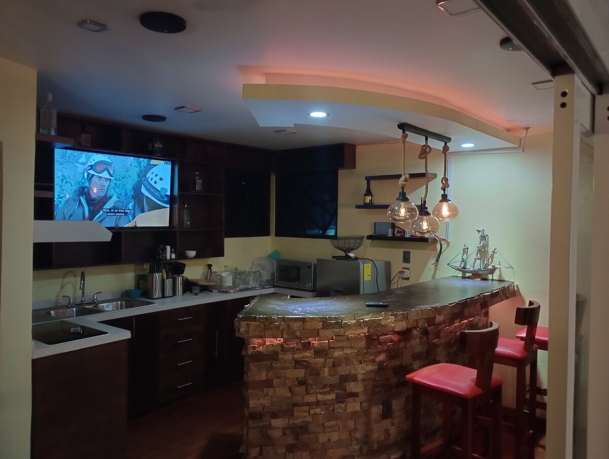 Kom og nyd et unikt og specielt sted, væk fra byens larm. Hvis du vil have et sted til rekreation, hvile, at komme i kontakt med naturen, tilbringe tid og nyde et familiemoment, er dette det rigtige sted. Det er også 5 minutter fra centrum i bil, 3 minutter fra Aurrerá, 4 minutter fra en Oxxo, og der er en bar, der er inden for gåafstand. Denne hytte har alt, hvad man kan ønske sig.