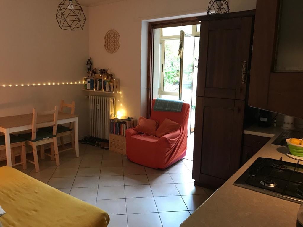 Et enkelt og romantisk rum, et ægte værelse uden dikkedarer med tekøkken og en lille terrasse med udsigt over floden: herfra kan du se en lille stenbro ... og lyden af rindende vand. Boligen er en stor enhed: hele huset er blevet restaureret ved hjælp af naturlige materialer, kalk og maling lavet med mel og hørfrøolie. I vintermånederne er der en brændeovn, som gæsterne kan bruge selvstændigt. Brænde til opholdet er inkluderet.