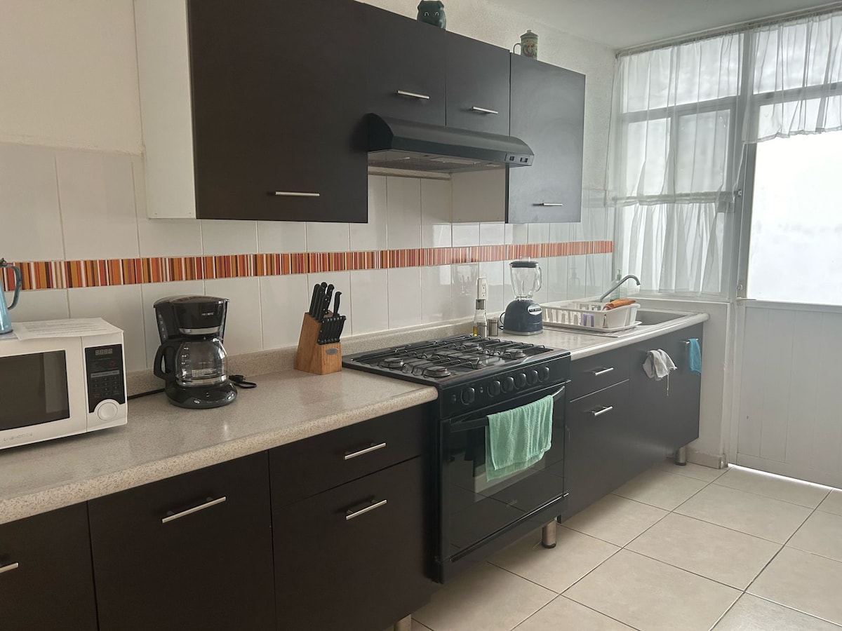 ¡Bienvenidos a nuestro acogedor refugio familiar! Ubicado en una zona segura, nuestro Airbnb es ideal para una estancia relajante en familia. Ofrecemos: -Espacios Cómodos: 2 habitaciones, 1 baño completo, cocina equipada y sala de estar acogedora. -Ubicación Conveniente: Cerca de tiendas, restaurantes, parques y transporte público. -Comodidades: Wi-Fi, servicio de streaming (Disney, Amazon Prime, claro video, Roku), cámara de seguridad y más. ¡Esperamos recibirte pronto!