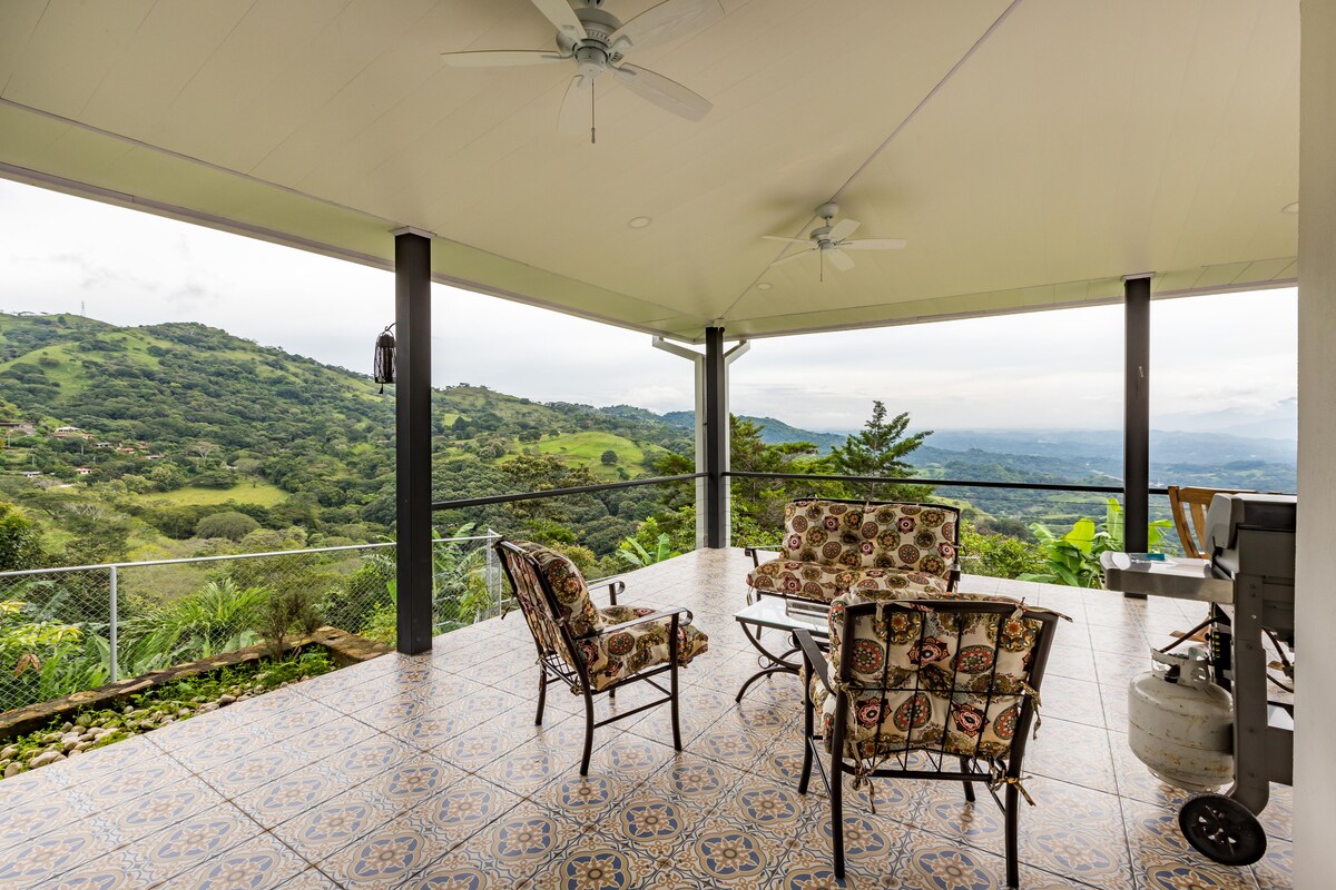 Nyt, fuldt møbleret hus med en fantastisk udsigt over vulkaner og dal! Beliggende i et roligt lokalsamfund meget tæt på Atenas centrum (4,5 km). Stort hovedværelse med kingsize-seng plus et gæsteværelse. To komplette badeværelser. Moderne design og indretning. Stort, integreret køkken med bordplader i granit og alle apparater. Meget rummeligt socialt område med store vinduer og mygskærme. Stor terrasse med terrasse og indbygget jacuzzi. Fantastisk udsigt overalt. Service omfatter gartner og stuepige (en gang om ugen).