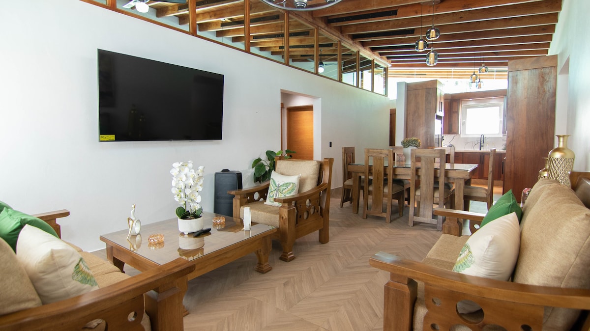 Velkommen til vores bolig omgivet af naturlig skønhed med en rolig og hyggelig atmosfære i det eksklusive ferieprojekt La Mansión San José de Las Matas. Vores ejendom er ideel til at nyde et uforglemmeligt ophold med dine kære og tilbyder et fredfyldt og behageligt miljø, der er perfekt til at slappe af og undslippe stress og travlhed i bylivet. Du kan starte dagen med den blide melodi af fuglesang, gå barfodet og komme i kontakt med jorden.
