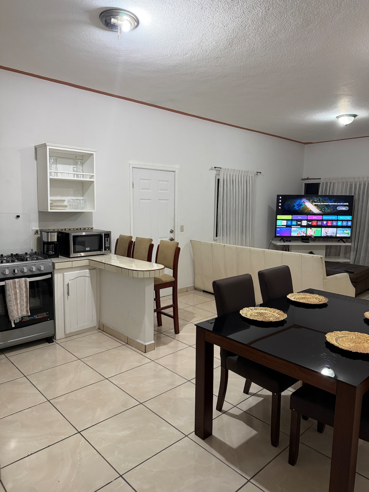Tag på en smuttur til vores hyggelige sted, der er ideelt til 2 personer. Det er elegant indrettet og tilbyder alle de nødvendige bekvemmeligheder, så du kan få en ægte oplevelse. Stue med tv, queensize seng og tv, et fuldt udstyret køkken. Kun få minutter fra byens centrum og dens største attraktioner, vil du være tæt på supermarkeder, caféer og charmerende butikker. Det perfekte sted at udforske, hvad Santa Rosa har at byde på. Vores Airbnb er det ideelle udgangspunkt. Vi glæder os til at se dig!