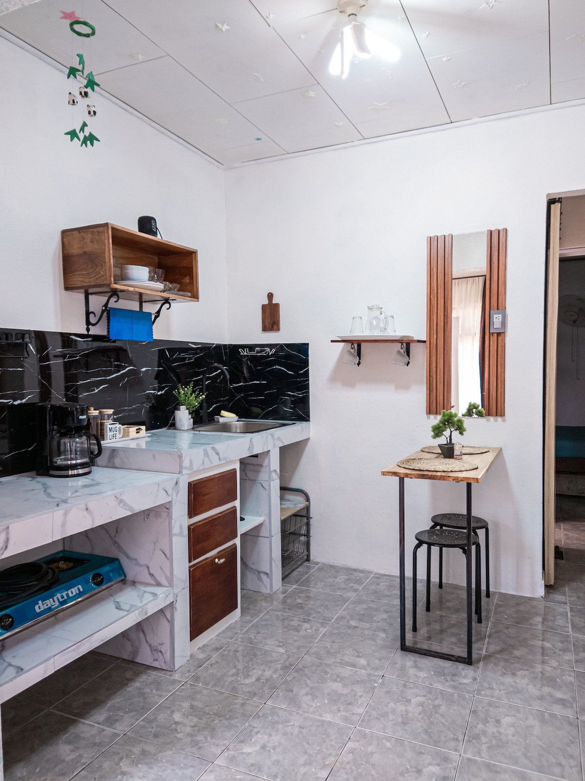 Velkommen til Casa Mar, en hyggelig atelierlejlighed beliggende i Barramar, kun 5 minutter fra det nye hospital, og 10–15 minutter fra stranden, tæt på restauranter og supermarkeder. Er et roligt og sikkert beboelsesområde. Ideel til at afbryde og genoplade din energi. Den er designet til dem, der søger afslapning og uforglemmelige solnedgange med en unik panoramaudsigt over byen Puntarenas. Perfekt til korte smutture eller længerevarende ophold, uanset om det er til ferie eller fjernarbejde.