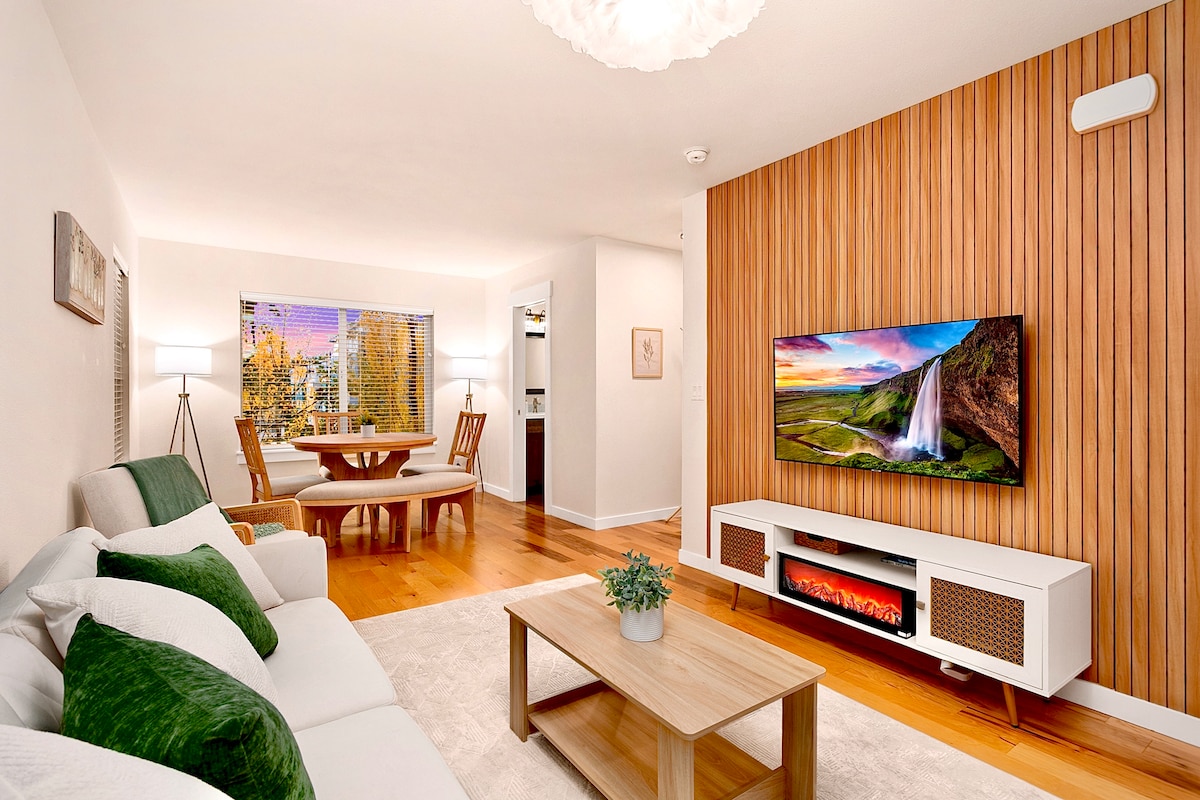 Slap af i denne nyrenoverede duplex i én etage – perfekt til gæster med nedsat mobilitet. Der er ingen trapper indenfor, kun et trin ved indgangen. Dette stilfulde fristed har 2 soveværelser, 1 komplet badeværelse, et fuldt udstyret køkken, et kontor med vaskeri og en privat baghave – din personlige oase til afslapning. Beliggende i et roligt boligkvarter i nærheden af parker og stier, og kun 15 minutter i bil til DT Seattle. Her kan du nyde komfort, bekvemmelighed og sikkerhed.